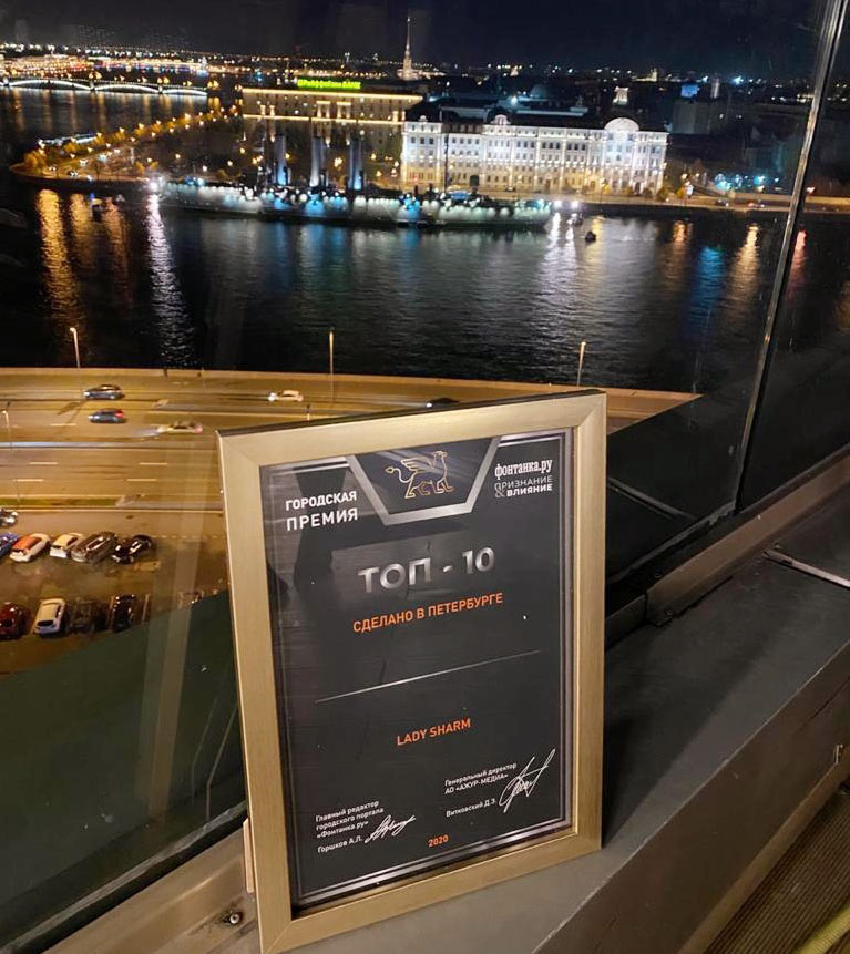 Компании Lady Sharm вручили диплом номинантов на Премию "Признание и влияние", которую ежегодно проводит в Санкт-Петербурга городской портал Фонтанка.ру.