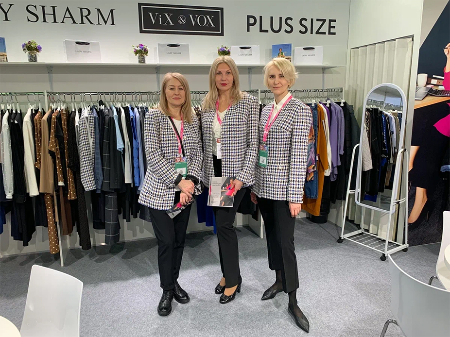 В этот раз мы привезли на выставку коллекцию Осень 2023. Ее основная линия - деловая одежда к началу Нового бизнес-года и учебного года. Именно это нас и вдохновило на выбор стиля. Мы встречали наших гостей на выставке в деловых жакетах с модным принтом "гусиная лапка". Эта модель делового жакета — одна из фаворитов в коллекции Lady Sharm.