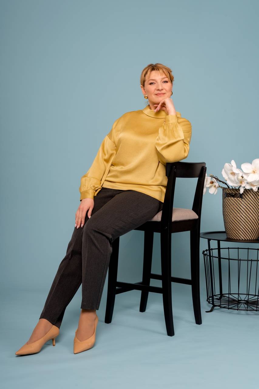 В нашей подборке, в рамках фото-проекта «Простые истории» Анна предпочла несколько кежуальных образов, а так же выбрала костюм с жилетом, утепленный жакет с денимом, яркую блузу в желто-зеленом оттенке и оригинальное романтичное платье в благородном синем оттенке.